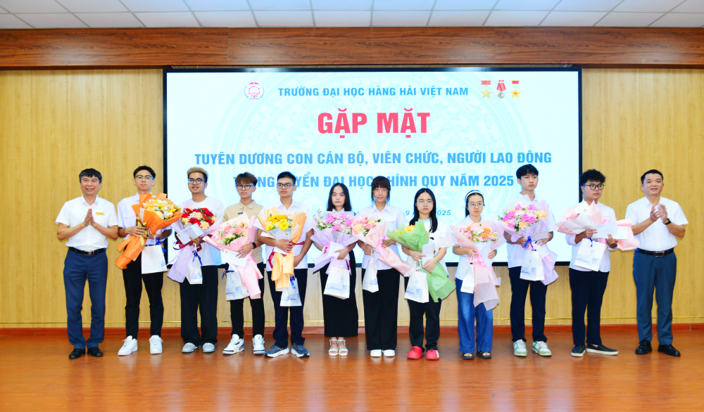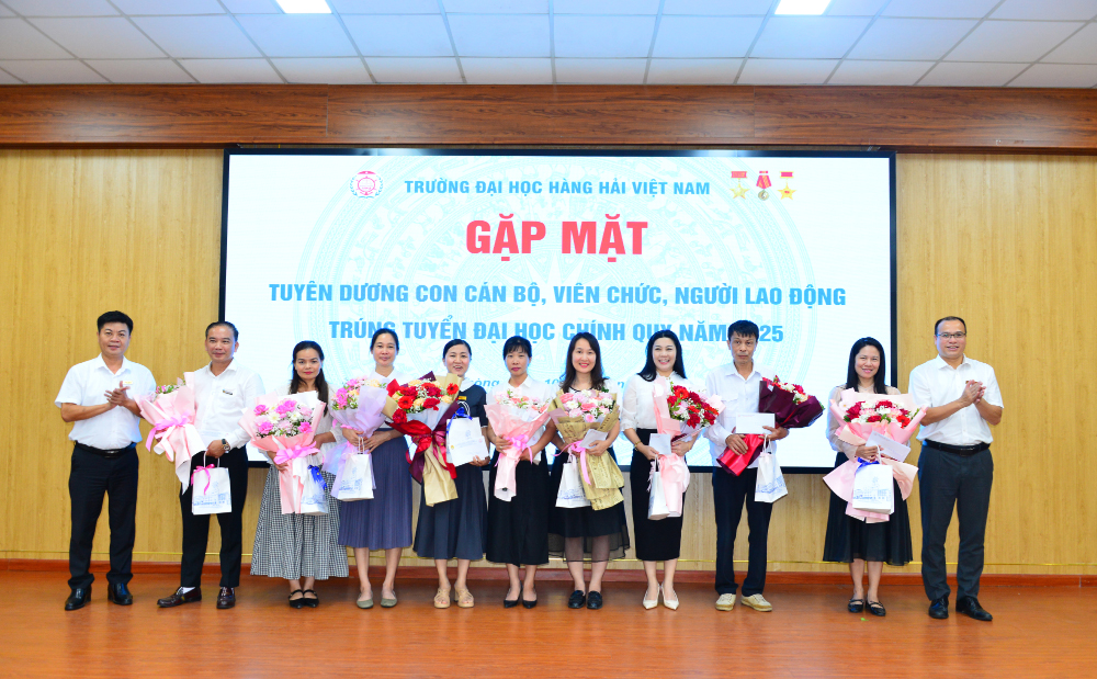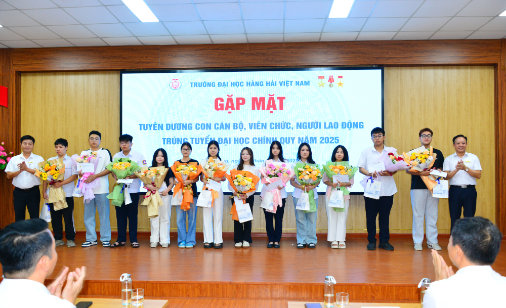 Trong không khí hân hoan của những ngày đầu năm học mới 2025 - 2026, sáng 10/9/2025, Trường Đại học Hàng hải Việt Nam đã tổ chức Gặp mặt tuyên dương con cán bộ, viên chức, người lao động (CB, VC, NLĐ) trúng tuyển đại học chính quy năm 2025. Đây là bước ngoặt lớn trong cuộc đời đối với mỗi tân sinh viên vừa bước qua ngưỡng cửa giảng đường đại học; niềm vui ấy không chỉ của riêng các em mà còn là mong mỏi của gia đình, Nhà trường và toàn xã hội.