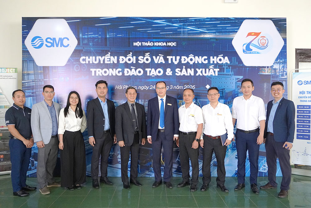 Ngày 24/3/2026, Trường Đại học Hàng hải Việt Nam phối hợp cùng Công ty TNHH SMC Corporation Việt Nam tổ chức Hội thảo khoa học “Chuyển đổi số và Tự động hóa trong đào tạo và sản xuất” với sự tham dự của các đại biểu khách mời doanh nghiệp, chuyên gia, giảng viên và sinh viên, nhằm tăng cường kết nối giữa đào tạo và thực tiễn sản xuất trong bối cảnh chuyển đổi số đang diễn ra mạnh mẽ.