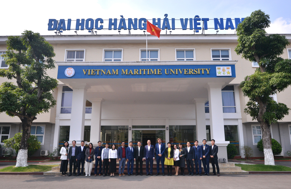 Tiếp Đoàn tại Phòng khách Nhà trường, PGS.TS. Nguyễn Minh Đức - Phó Hiệu trưởng Trường Đại học Hàng hải Việt Nam đã giới thiệu tổng quan về năng lực đào tạo cũng như những thế mạnh chuyên môn của Nhà trường, đặc biệt trong các lĩnh vực đào tạo gắn với ngành nghề đi biển. Đồng thời, thầy Phó Hiệu trưởng cũng chia sẻ về xu hướng xanh hóa hệ thống giao thông vận tải tại Việt Nam, thể hiện sự quan tâm ngày càng lớn của Việt Nam đối với mục tiêu phát triển bền vững, nhất là trong lĩnh vực hàng hải.