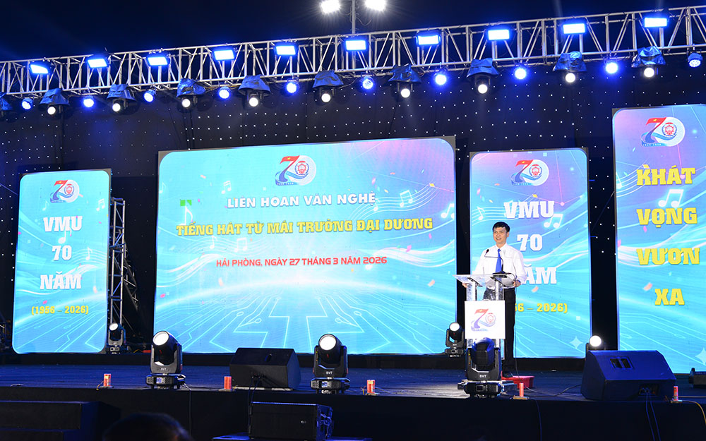 Trong không khí trang trọng và đầy tự hào kỷ niệm 70 năm thành lập Trường (01/4/1956 - 01/4/2026), tối 27/3/2026, Trường Đại học Hàng hải Việt Nam đã long trọng tổ chức Liên hoan văn nghệ “Tiếng hát từ Mái trường đại Đại dương” với không khí sôi nổi, đầy cảm xúc, thu hút đông đảo cán bộ, giảng viên, học viên và sinh viên tham gia.