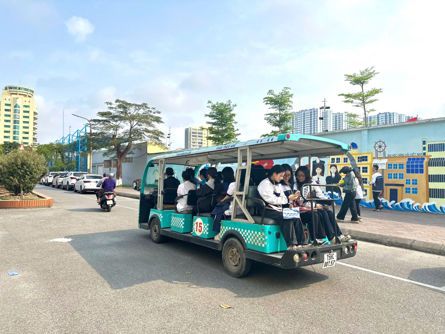 Xe đưa đón học sinh với những tour thăm quan miễn phí xung quanh Trường Đại học Hàng hải Việt Nam