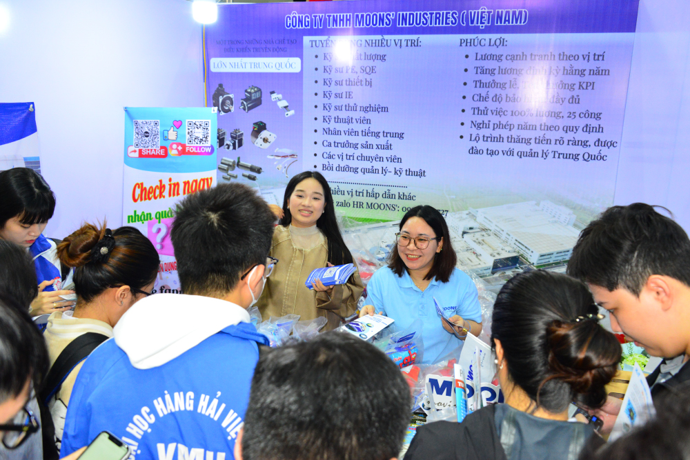Ngay từ sáng sớm, gần 2.000 lượt sinh viên năm cuối, cựu sinh viên và người lao động có nhu cầu tìm việc làm trên địa bàn thành phố Hải Phòng đã tham dự, trực tiếp tìm hiểu, kết nối và tham gia phỏng vấn với các nhà tuyển dụng tại gian hàng của từng doanh nghiệp. Các ứng viên chủ động chuẩn bị hồ sơ cá nhân, trao đổi trực tiếp với doanh nghiệp, qua đó hiểu rõ hơn về yêu cầu của thị trường lao động và định hướng nghề nghiệp cho tương lai. Kết quả, hơn 500 ứng viên đã được các doanh nghiệp tuyển dụng vào các vị trí làm việc toàn thời gian, bán thời gian và thực tập sinh.